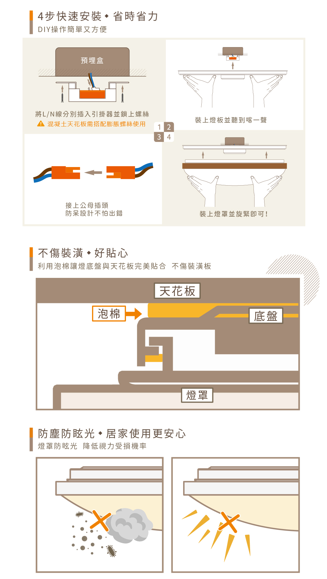 燈體材質 : PMMA星鑽燈罩、烤漆鐵底盤、PC防觸電燈罩