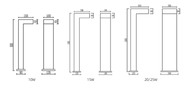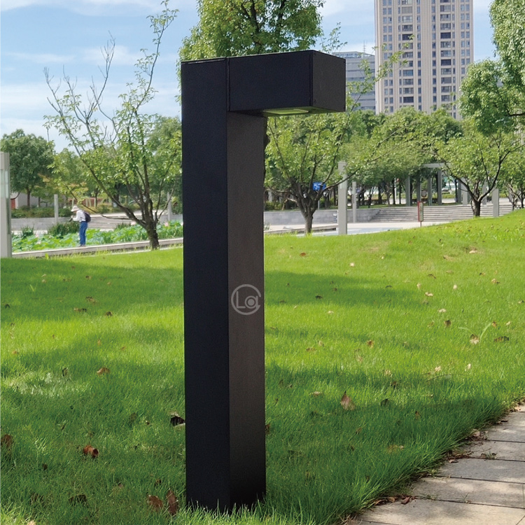 現代簡約方形戶外立柱燈設計,光線向下投射,適合步道、庭園、露台與戶外商業空間照明。