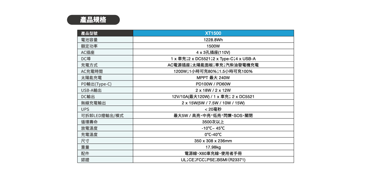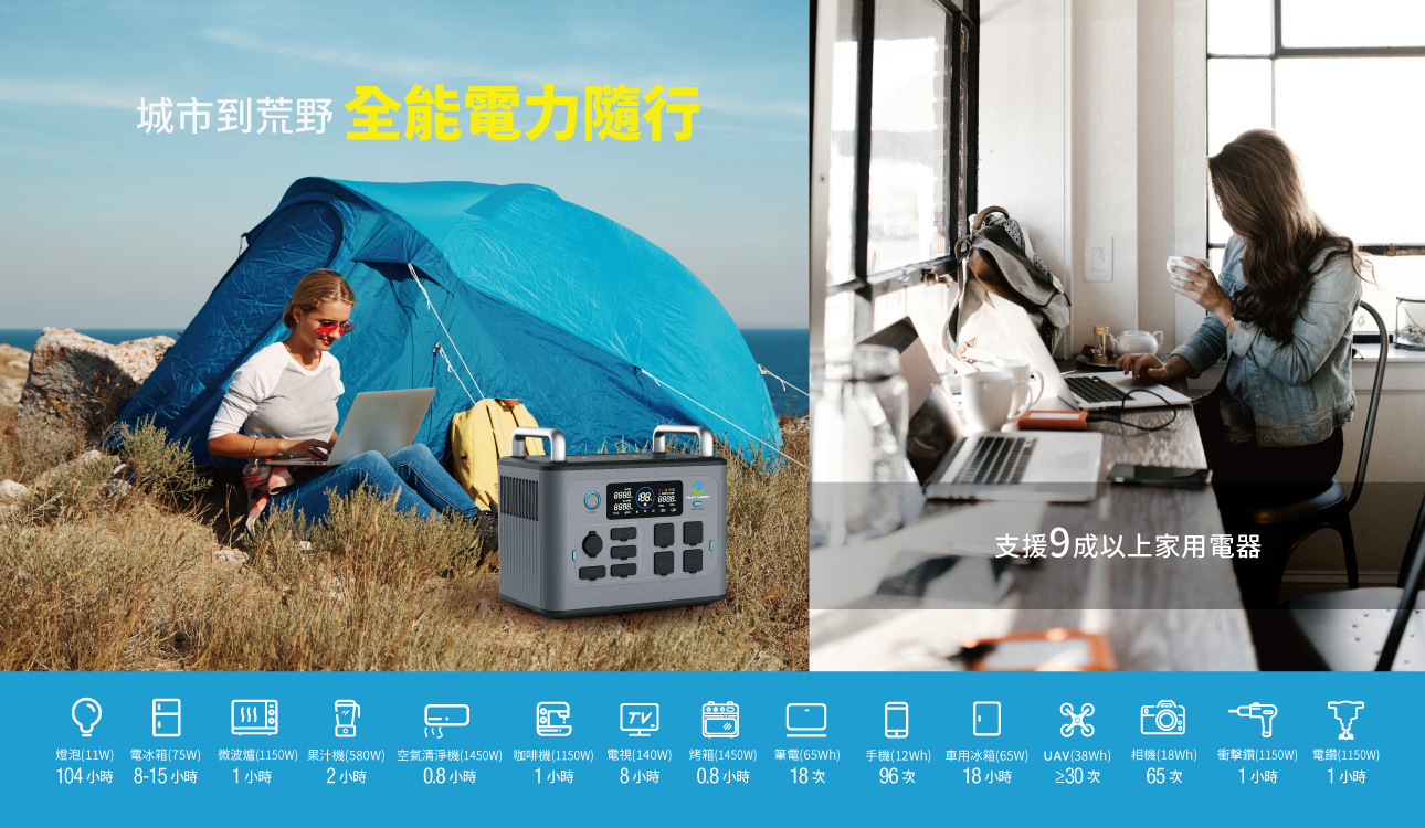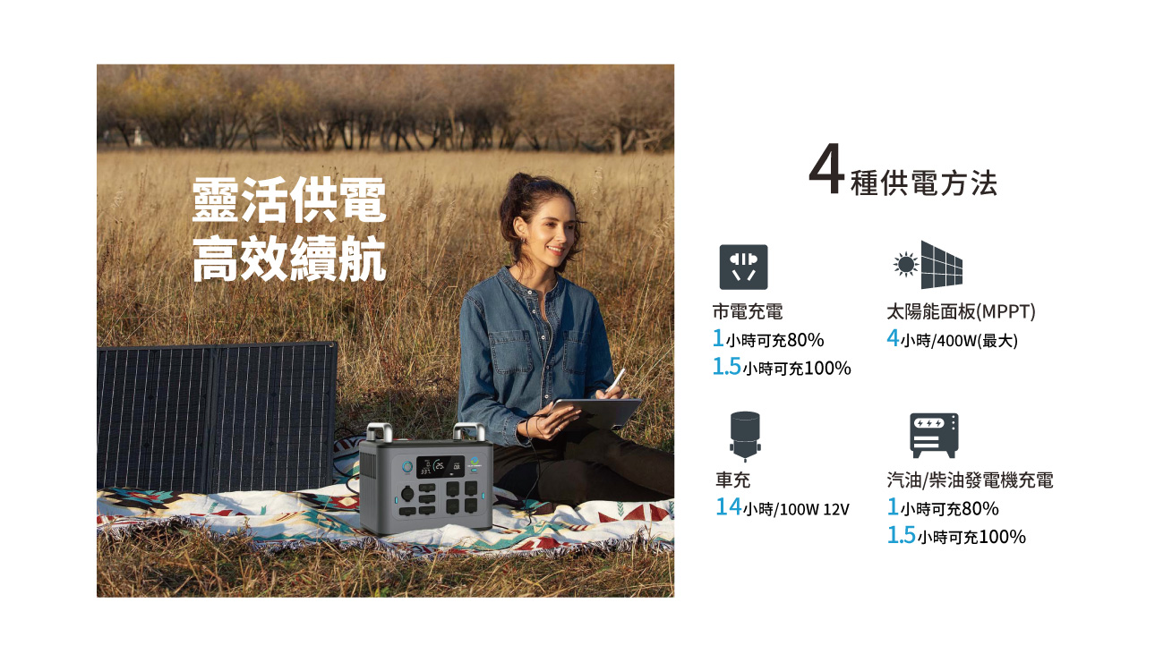 AC充電時間 :1200W;1小時可充80%;1.5小時可充100%